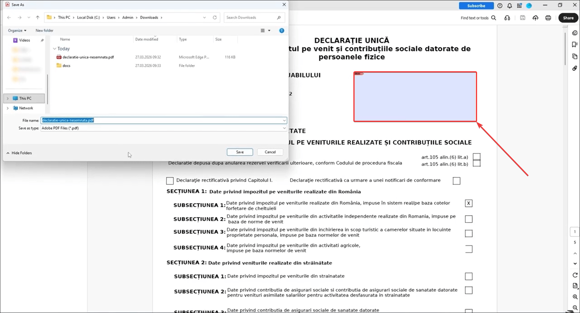 - Primul pas pentru depunerea prin e-Guvernare este să semnezi electronic Declarația unică descărcată (cu Adobe Reader sau Acrobat).