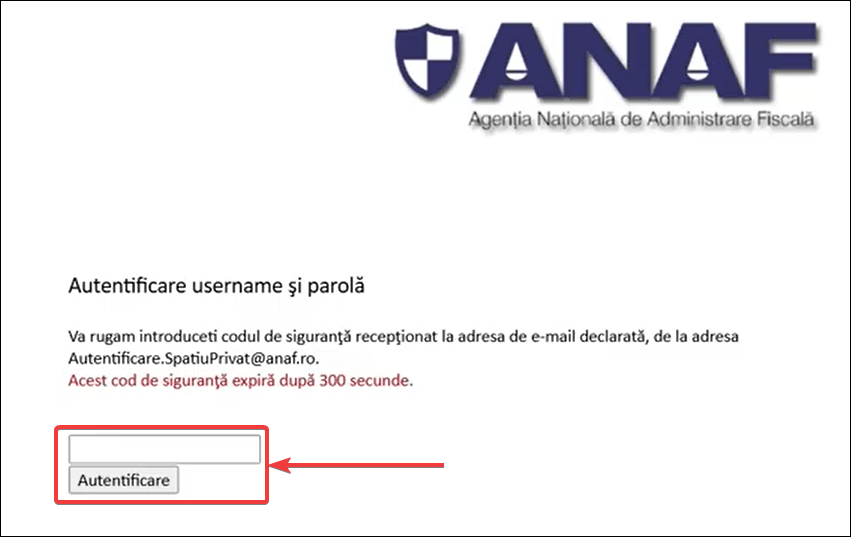 - Apoi, introdu codul de siguranță primit pe e-mail.