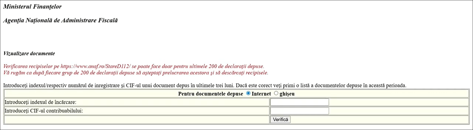 - În continuare, copiază linkul oferit de ANAF. Intră pe acel link, completează indexul de încărcare primit și CNP-ul tău, iar apoi dă click pe butonul Verifică.