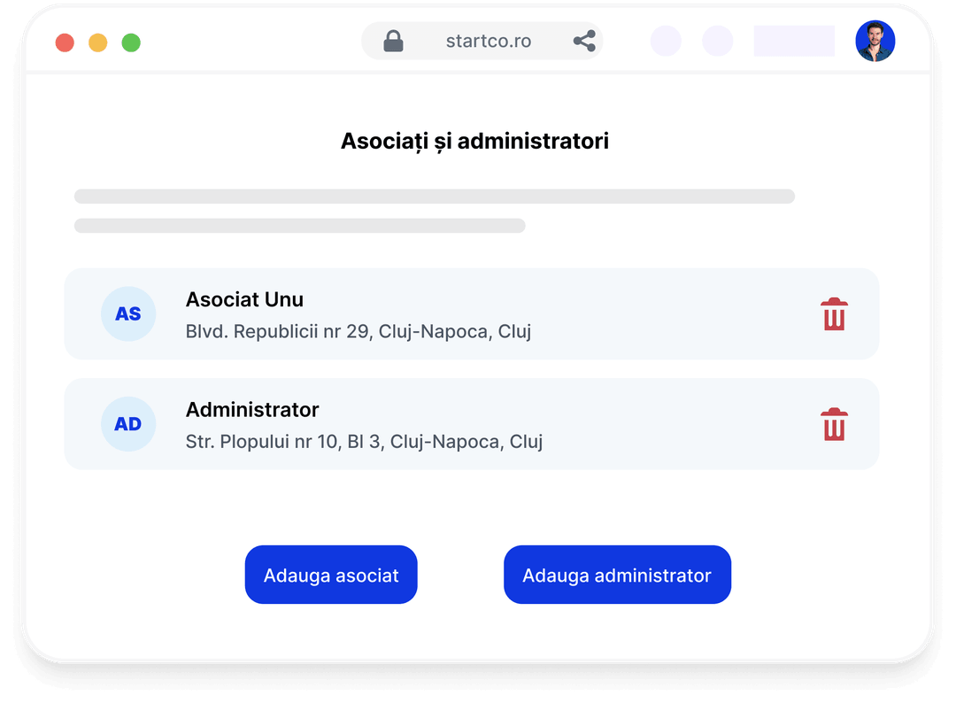 Deschizi și gestionezi SRL-ul 100% online, direct din contul tău StartCo. Câștigi timp, îți reduci investiția inițială și ai toate serviciile într-o singură aplicație prietenoasă: